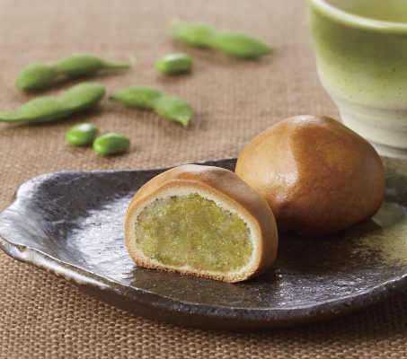 山形県の特産品である「だだちゃ豆」を使った餡を、しっとりとした皮で包んだ焼きまんじゅうです。あえて粗めにすりつぶした「だだちゃ豆」の食感と、白餡のなめらかな舌触りが特徴で、優しい味わいに仕上げました。 この餡は、試作を重ね1〜2年かけて開発をした特製の餡です。実は「だだちゃ豆」は、火を入れても固さが残りやすく、また特有の青臭さがあり、お菓子にするのが難しい素材なんです。そこで、白インゲンや枝豆をブレンドし、青臭さを中和し豆の香りがふんわり香るようにしました。着色料や保存料は使わず、素材本来の色と味わいを生かしているのも特徴です。 発売後も、契約農家さんから仕入れたり、自社で「だだっ子農園」を始めたりと、素材への探求を続けてきました。私たちの想いが詰まった商品なので、卸売りはせず、直販のみで大切に販売しています。