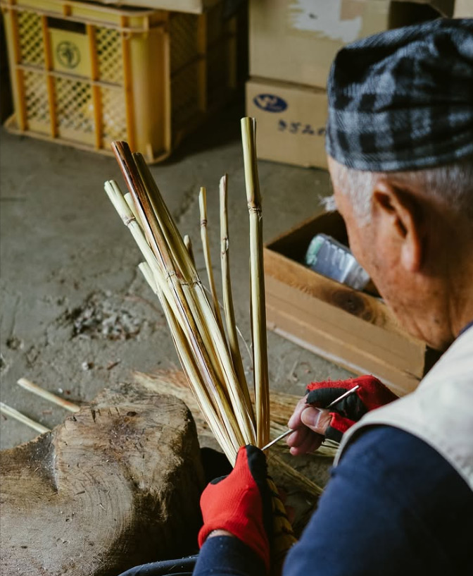 1日4名限定のほうき作り体験では、本物の素材に触れ、手を動かしながら、1本のほうきを作る時間をご用意しています。