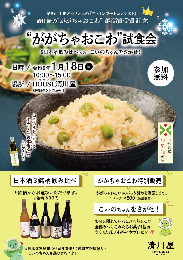 2026年1月18日(日)に HOUSE清川屋 にて「“ががちゃおこわ”試食会」を開催します。